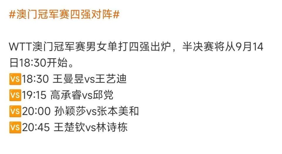 这场“中日大战”,国乒孙颖莎一直是张本好意思和渴慕对阵的选手,亦然张本好意思和每天探员的“假思敌”,如今两东说念主在半决赛相遇,龙争虎斗?9月14日20:00,WTT澳门冠军赛女单半决赛:国乒孙颖莎VS日乒张本好意思和,CCTV5直播,咪咕体育付费直播。在张本好意思和母亲张本凌看来,张本好意思和是比孙颖莎愈加具有资质的,也等于“乒乓球天才仙女”。张本凌暗意:不出两年,我男儿就不错成竹于胸礼服孙颖莎!看到如斯自信的张本凌,咱们球迷也很意思张本好意思和有什么上风?
