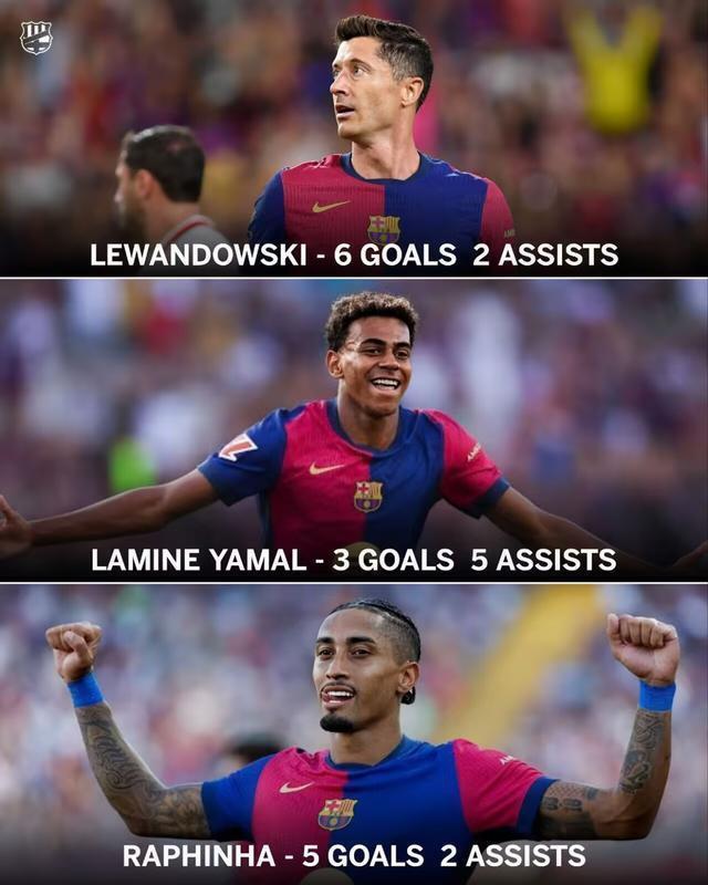 更不要说还有越来越出色的亚马尔,在履历了欧洲杯的大赛浸礼之后,亚马尔新赛季在热切端愈加运用自由。出色的盘带外加在边路极强的单点爆破才调,齐让他在热切端恣心所欲。球员不光精进了传挟制球的步伐,更浩大的是亚马尔这个赛季在射术上也有了光显的提高。这更是令巴萨的膺惩质地达到了近几个赛季的巅峰。截至到当今,这个膺惩组合在联赛当中的数据确以为莱万六球两助攻,当今领跑联赛弓手榜。